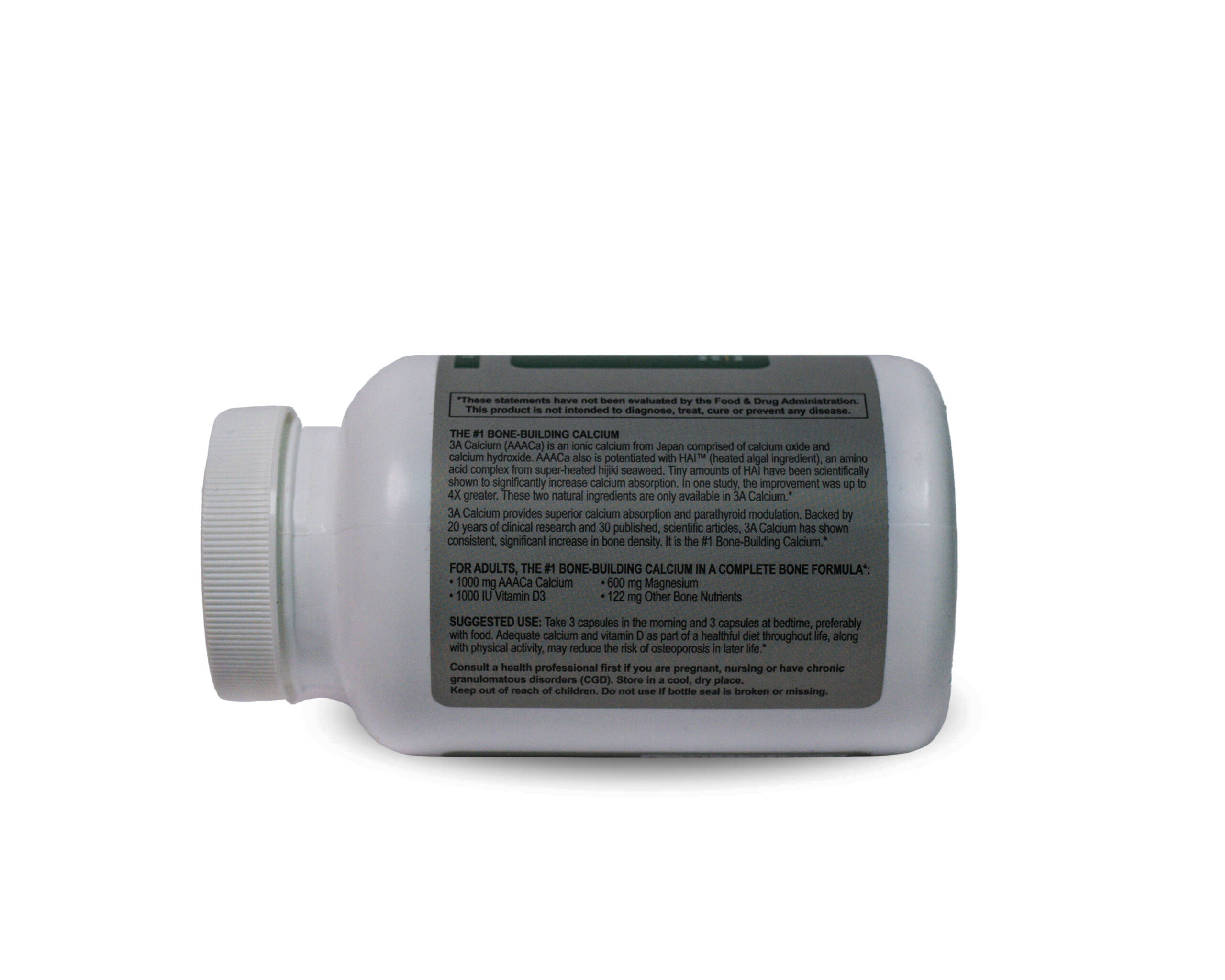 3A Calcium Ultra is an excellent calcium supplement for women of all ages and men concerned about their bone health. When taken as directed, this superior formulation contains 1,000mg of our patented AAACa, shown in scientific studies to build bone density, as well as 1,000 IU of Vitamin D3, 600 mg of magnesium, Vitamins K and C plus Zinc, Copper Manganese and Boron.*
