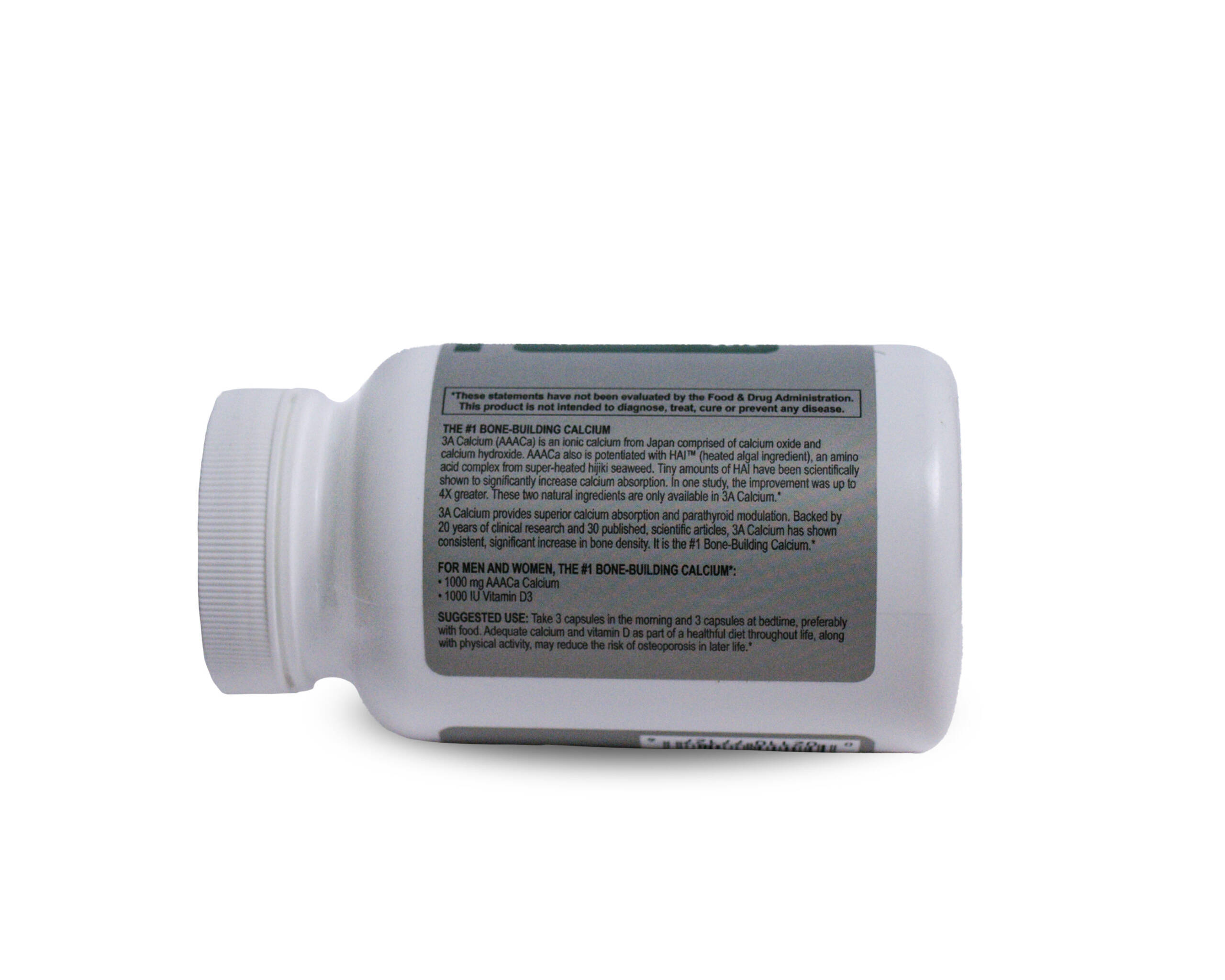 3A Calcium is a unique ionic calcium. It starts out as oyster shell, which is then smelted at 800° C. This extreme heat changes the chemical structure of oyster shell from calcium carbonate to calcium oxide and calcium hydroxide. The superheating process removes nearly all of the heavy metals, such as lead, found in oyster shell. The calcium is then combined with HAI, a unique amino acid complex from super-heated hijiki seaweed. Tiny amounts of HAI have been scientifically shown to further elevate calcium oxide and calcium hydroxide absorption. Calcium oxide and calcium hydroxide + HAI provides superior calcium absorption and PTH modulation. This combination has demonstrated consistent improvements in bone mineral density in clinical research. These two ingredients are only available in 3A Calcium.*